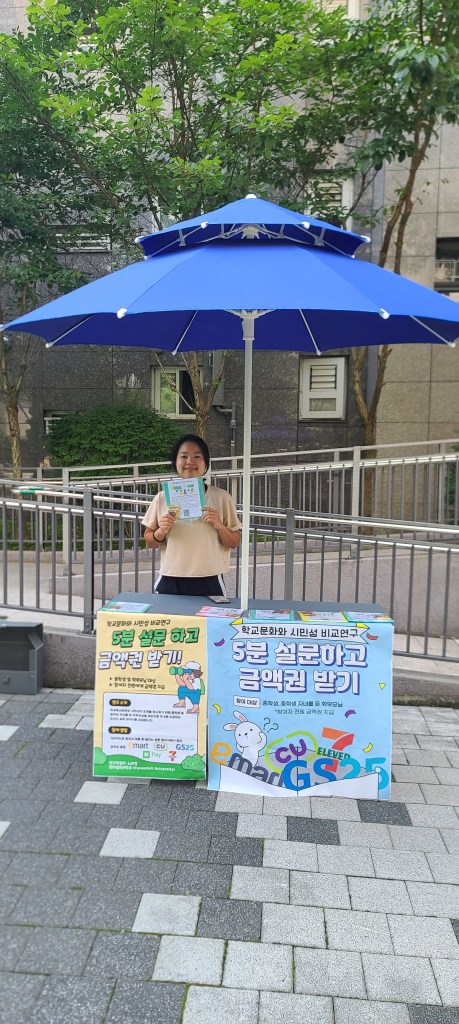 Here are some photos of my fieldwork in South Korea, where I worked with a team of Research Assistants to recruit survey participants from middle schools.
